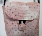 スマートフォンが入るくらいの大きさにして、袋の口にふたとボタンを付けています。