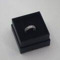 この構造により、視覚的な浮遊感と自然な非対称性が強調され、まるで生きているかのような柔らかな動きを感じさせます。光の加減や手の動きに応じて表情が変わる、美しく存在感のあるリングです。