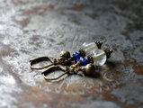 ナガ族クリア蜜柑玉とブルービーズ、民族鈴を繋いだ小さなピアスです。