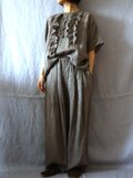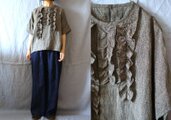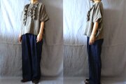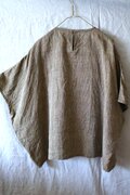 【受注制作】キャメル/グレンチェックリネン きっちりクルー/フリルドルマン袖プル