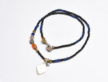 トゥアレグトップと漆黒&ブルーシードビーズ、シャン族カーネリアン、古代瑪瑙、トゥアレグビーズ、oldオリッサブラスのネックレス