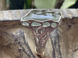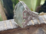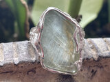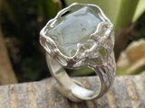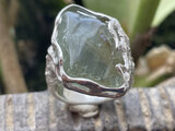 落ち着いた色味のアクアマリン原石は、今在る自身の鏡となり、心を内省し浄化し癒やしてくれる事でしょう。そしてどっしりとした安定感あるリングは、心のお守りとなってくれる事でしょう。