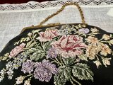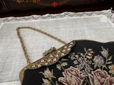 1900年代初期のアンティークオペラバッグ、うらおもて両面にプチポアン刺繍を施したエレガントなバッグです。