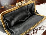 クラッシックな口金とチェーンは金仕上げ、ラインストーンのデコレーションがキラキラと華やかです。