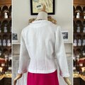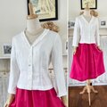 オフ白リネンのフリルブラウス『前開き・七分袖・麻のブラウス・ハオリモノ・エレガント』