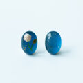 クリスタルオーバルカボジョンの裏に銀粉を蒔き青色の漆を塗った