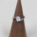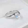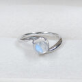 ブルーの輝き(シラー)が透明感の高い石の表面で揺らめきます、ぷっくりとしたブルー・ムーンストーンを留めた指輪です。