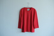 【new】リネンニット 7分袖プルオーバー(スカーレット)レディースLサイズ