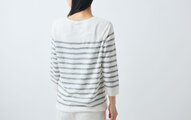 着用写真はボーダー柄ですが、本ページの無地も、ボーダー柄も、素材とパターンは同じで柄違いです。