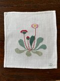 1900年代中期、麻地に麻の糸でスェーデンの野生の花を刺繍したミニクロス。