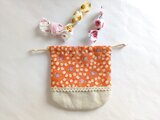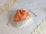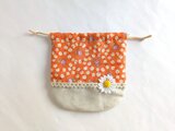 #オレンジ #花柄 #リネン #レース #デイジー #フラワーモチーフ #ミニ巾着 #巾着袋 #かわいい #小物入れ