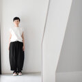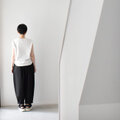 スタッフは、ワイドパンツやマキシ丈のスカートなど、特徴的なボトムとコーディネートして使うことが多く、