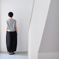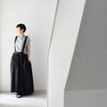 スタッフは、ワイドパンツやマキシ丈のスカートなど、特徴的なボトムとコーディネートして使うことが多く、