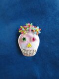 Tシャツや襟元などポップな雰囲気になるスカルのピンブローチです。