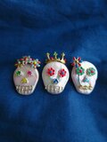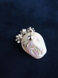 花びらのような淡水パールをスカルに見立てて3種類のピンブローチに仕立てました。