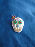 Tシャツや襟元などポップな雰囲気になるスカルのピンブローチです。