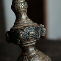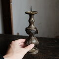 味のあるお品物◆金属製三本脚蝋立て 火立て 真鍮 古民家 古道具 インテリア オブジェ 仏教美術