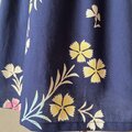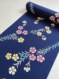 一度反物をベージュに染めた後に紺やお花の色を染めているので柔らかい雰囲気の色合いです。