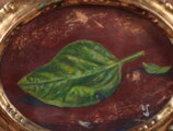 トンド型(円形)の額になりますが、楕円は不規則です。絵は額の方に合わせていますので同様に不規則な楕円をしています。特に問題もないのですが、それ自体がこの絵のおもしろさの一つなのかもしれないと思います。