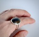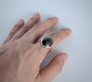その大きなカルセドニーを指幅いっぱいのシンプルなフリーサイズのリングに。