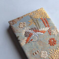 新橋色の生地に金を際立たせる技法で奥行きを感じる雰囲気に。