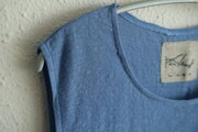 リネンの通気性の良さや柔らかさとコットンの強さを兼ね備えていて、軽く、蒸れずに、心地よい肌触りでさらっと着られます。首回りは丸首でほどよく空いていて、ノースリーブのため、着重ねの幅も広く、インナーとしてとても使いやすいです。