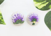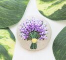 生成り色の綿リネン生地に可愛らしく咲くラベンダーの花束がモチーフの刺繍ブローチです。