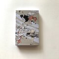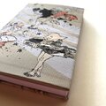 素材は美術名画織物です。比較的丈夫で色褪せし難い為、美しい絵柄を末永くお楽しみ頂けます。織物(繊維)は摩擦や引っかけに繊細な素材です。御朱印帳袋等を使用して御朱印帳を保護して頂き、本作品をより美しい状態で保って頂く事をおすすめ致します。