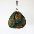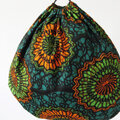 コロンとした形がかわいい、アフリカ布の大きな巾着。