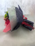 華やかさとボリューム感もある個性的なデザインの花束です。