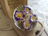 ヴィンテージ 白と紫のお花 ルーサイト製ブローチ