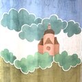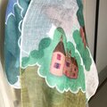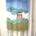 麻100%ストールに、フランスの田舎町の家をデザインして、ロウケツ染の技法を使って、染めました。