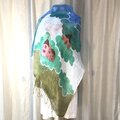 シルク ロウケツ染ストール 花 エメラルド今日届きました。エメラルド色、本当に綺麗ですね。大好きな色です。 手触り、肌当たりも良く、ありがとうございました。