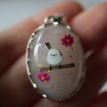 ローズクォーツとシマエナガ、コスモスのネックレス 金箔 24k ネックレス