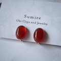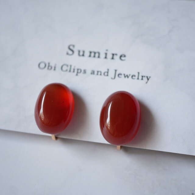 深みのある赤色が印象的な天然石・赤瑪瑙の上品なきらめきを添えた、秋らしいシンプルなアクセサリーです。