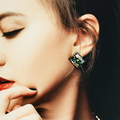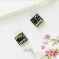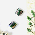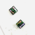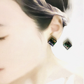 グリーンとマーブル螺鈿のスクエアピアスイヤリング1470