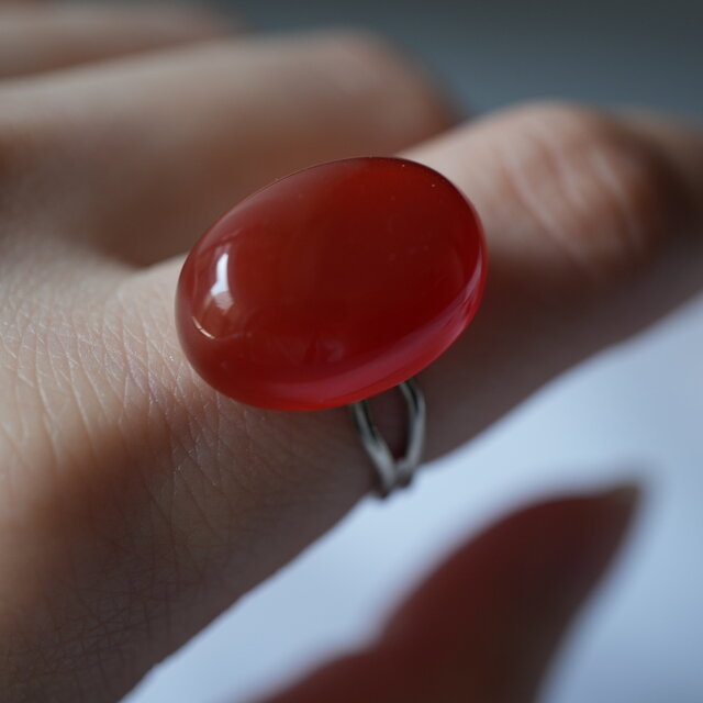 艶やかで深みのある赤が印象的な天然石・赤瑪瑙をあしらった、シンプルなリングです。