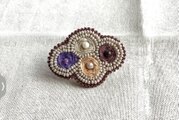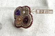 ブラウン、マスタード、ネイビー、アイボリーの4色を合わせたブローチです。