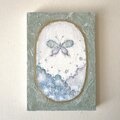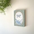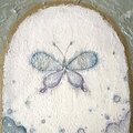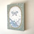 お花と共に大好きなモチーフの『ちょうちょ』を、木製パネルにテクスチャーをつけ、アクリル絵の具やオイルパステル等を使用し、描きました。
