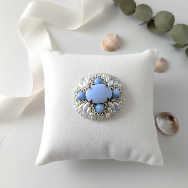 ヴィンテージカボションのビーズ刺繍ブローチ(K1228)