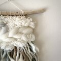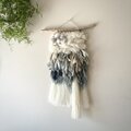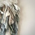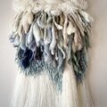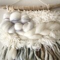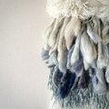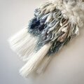 ふわふわの羊毛や手紡ぎ糸、極細リネン、コットン、ファンシーヤーン、アンティークの着物地など、様々な種類の素材を組み合わせ織りあげた一点ものです。