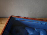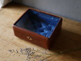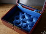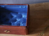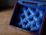 ブルーのクッション ガラス×レザー ジュエリーケース フランスアンティーク