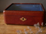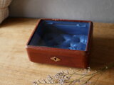 全面ガラスのジュエリーケースはまだ見かけますが、こちらは蓋の部分だけガラスを用いたケースです。
