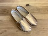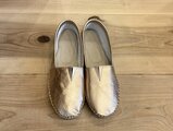 本日届きました。こちらの確認不足で、本来2週間ほどかかるところ、大変早く仕上げていただき、希望の日程に間に合わせてくださいました。今度お願いする時は内容をしっかりと確認し、余裕を持ってオーダーいたします。ありがとうございました。作品はとても丁寧に作られており、履き心地バツグンです。リピーターが多いのも納得です。また別のお色も注文します。