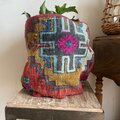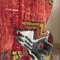 目を惹くエスニックな柄に、深みのあるレッドやブルー、マスタードなどが織り込まれた絶妙な配色は、置くだけで空間をパッと明るくしてくれます。長い時間をかけて育まれたラグの風合いと、ヴィンテージならではの味わいがたまりません。しっかりとした厚みがあり、柔らかいけど自立する安心感も◎
