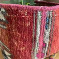 大型縦28cm×直径約28cmグリーンポットカバー トルコヴィンテージラグ 赤