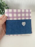 優しいパープルのチェック柄ガーゼ生地にデニム風のガーゼ生地を合わせ、