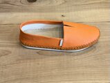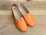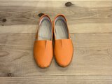 ビタミンカラーのオレンジが目を引く、軽やかなレザースリッポン。