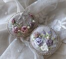 ナチュラルリネンにアンティークチュールレースをのせて、リボン刺繍とビーズを施したブローチです。