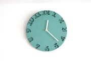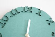 緑色に着色された木板を用いた壁掛けタイプの時計です。
